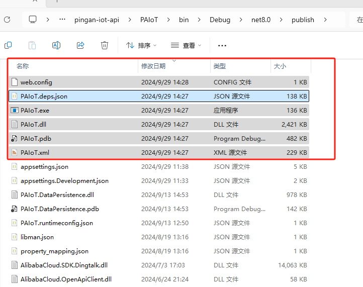 appsettings.json生产的平安iot配置文件,其他的平安项目与其类似